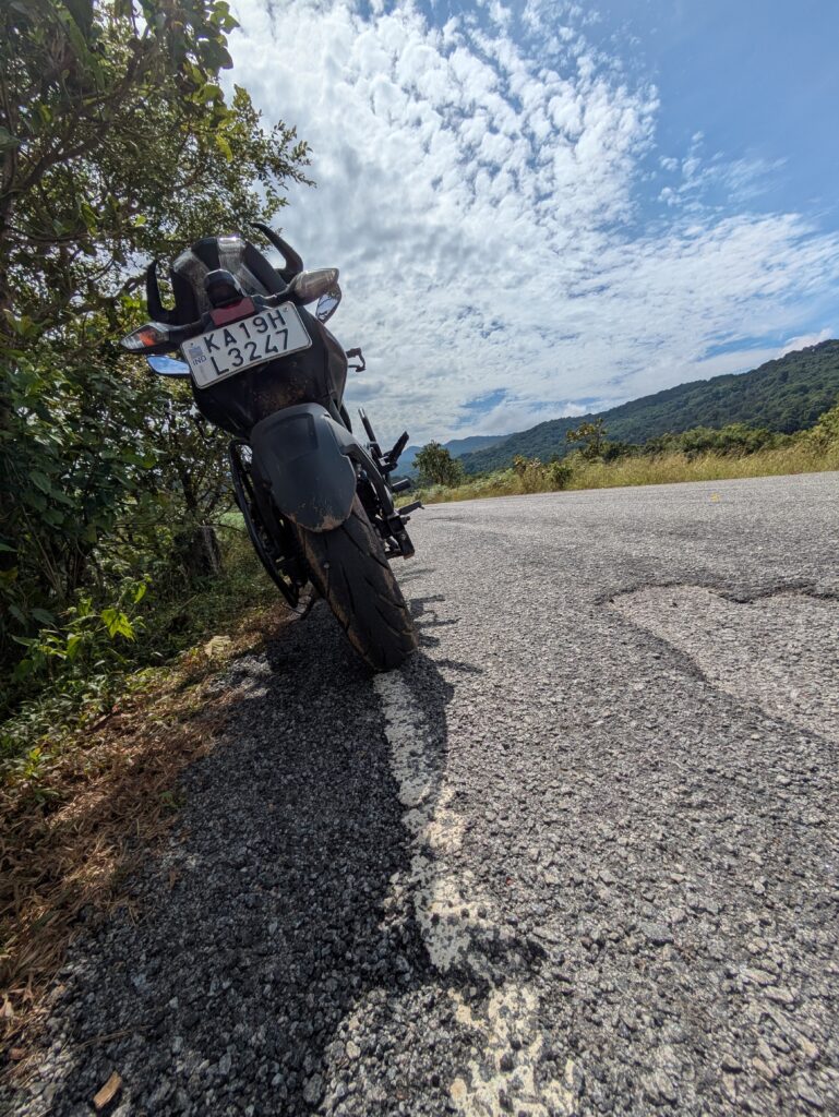 I swear!! I didn’t go to Samse for some big mountain trip. I just wanted a simple ride because it had been a long time since I moved from my native. But the moment I entered the route, I knew I messed up. The roads after the rains were horrible. Every few minutes I was thinking “why the fluff” did I even come here. And on top of that, I was scared about my tyres. I already had three punctures on my brand new Apollo tyres. THREE. On new tyres. So the whole ride I kept thinking please not another puncture. Last time they fixed it with a mushroom patch and I didn’t want to deal with that again.